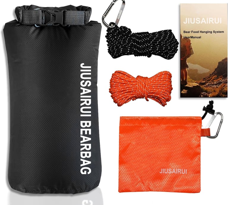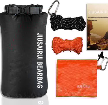 The JIUSAIRUI Ultralight Bear Hanging System is a simple, lightweight solution that lets you hang your food bag from a tree branch using cord and lightweight components. It weighs only a few ounces and packs down tiny, which makes it ideal for backpacking where space and weight matter.